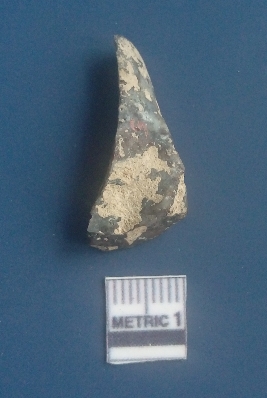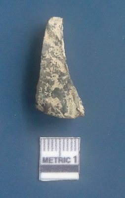 | Description / विवरण | It is a flake. The sides are sharp and retouched. The striking platform and the bulb of percussion is clearly visible. The flake scars are clearly seen on the dorsal surface while the ventral surface is plain. The soil incrustations are clearly visible on the surface. |