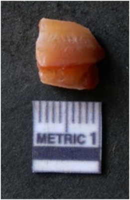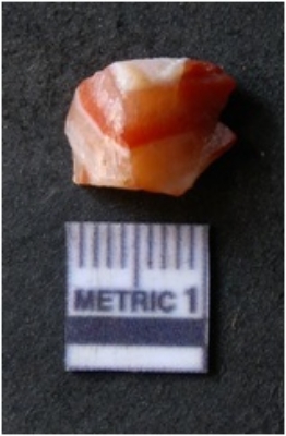 | Description / विवरण | It is carnelian flake red in color, with sharp flakes edges and a small bulb of percussion owing to knapping activity. The piece has sharp flaked edges and a crypto-crystalline matrix. |