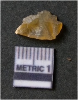 | Description / विवरण | It is chalcedony flake, translucent in appearance. The piece shows sharp pointed ends and flake scars on the surface as a result of flaking. The piece shows a bulb of percussion. |