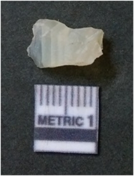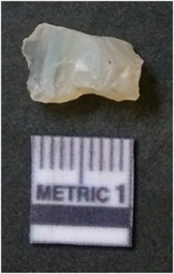 | Description / विवरण | The quartz flake has sharp flaked edges and pointed ends as a result of flaking. The piece is semi-transparent in nature with irregular fracture pattern. The piece is roughly triangular in shape and has a prominent bulb of percussion. |
