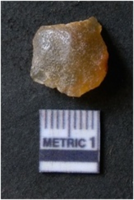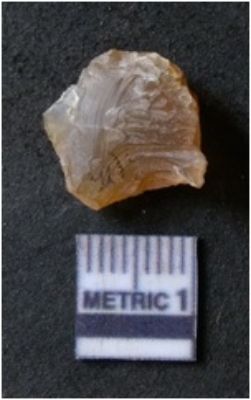 | Description / विवरण | It is chalcedony flake, translucent in appearance. The piece shows sharp pointed ends and flake scars on the surface as a result of flaking. The piece shows a bulb of percussion. |