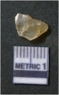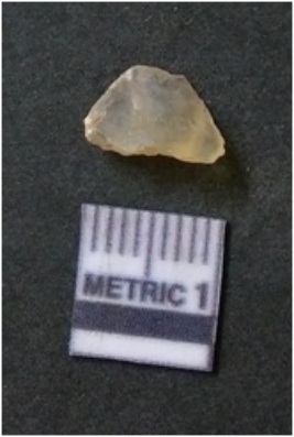 | Description / विवरण | It is chalcedony flake, translucent in appearance. The piece shows sharp pointed ends and flake scars on the surface as a result of flaking. The piece shows a bulb of percussion. |