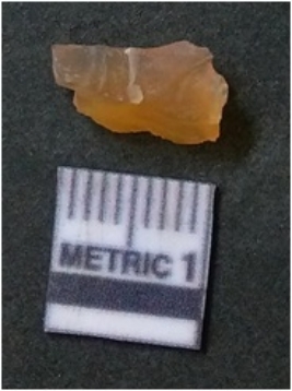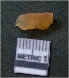| Description / विवरण | It is chalcedony flake, translucent in appearance. The piece shows sharp pointed ends and flake scars on the surface as a result of flaking. The piece shows a bulb of percussion. |
