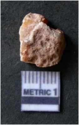 | Description / विवरण | The quartz flake has sharp flaked edges and pointed ends as a result of flaking. The piece is semi-transparent in nature with irregular fracture pattern. The piece is roughly triangular in shape and has a prominent bulb of percussion. |
