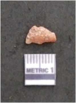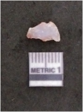 | Description / विवरण | The chalcedony flake is pale in color and translucent in appearance. The piece has s harp flaked ends and a bulbous end due to flaking. The flake has a crypto-crystalline silica matrix. |