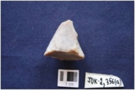 | Description / विवरण | A Chert Core with prepared platform along one end, seven bladescars, conical in shape, byproduct of stone tool manufacturing. |