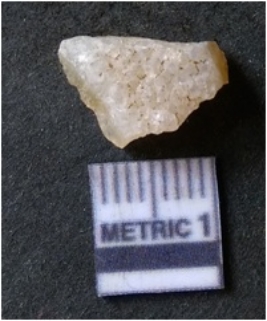 | Description / विवरण | It is chalcedony flake, translucent in appearance. The piece shows sharp pointed ends and flake scars on the surface as a result of flaking. The piece shows a bulb of percussion. |
