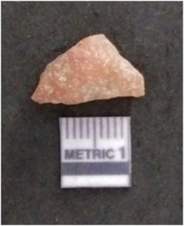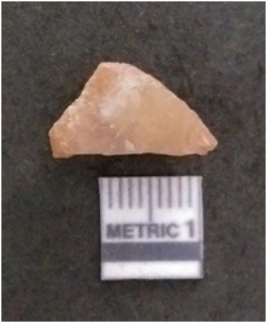 | Description / विवरण | The chalcedony flake is pale in color and translucent in appearance. The piece has s harp flaked ends and a bulbous end due to flaking. The flake has a crypto-crystalline silica matrix. |