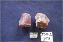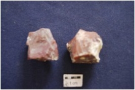 | Description / विवरण | 2 chert blade cores with bladescars, prepared platform along one end, byproduct of stone tool manufacturing. |
