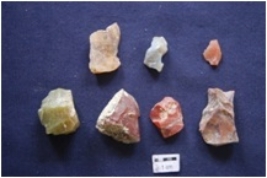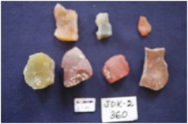 | Description / विवरण | Flakes and Nodules on Chalcedony and Chert, byproduct of stone tool manufacturing, nodules with bladescars and prepared platform along one end. |