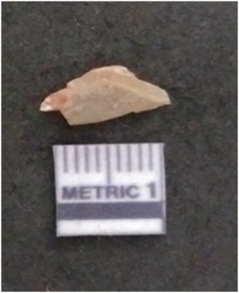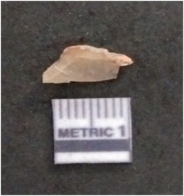 | Description / विवरण | The chalcedony flake is pale in color and translucent in appearance. The piece has s harp flaked ends and a bulbous end due to flaking. The flake has a crypto-crystalline silica matrix. |