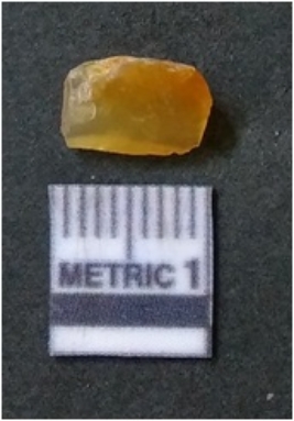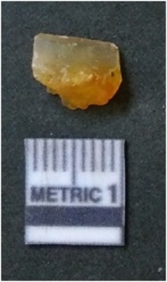 | Description / विवरण | It is chalcedony flake, translucent in appearance. The piece shows sharp pointed ends and flake scars on the surface as a result of flaking. The piece shows a bulb of percussion. |