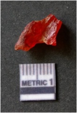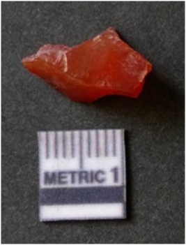 | Description / विवरण | It is carnelian flake red in color, with sharp flakes edges and a small bulb of percussion owing to knapping activity. The piece has sharp flaked edges and a crypto-crystalline matrix. |