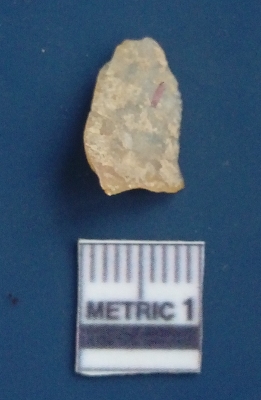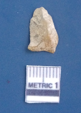| Description / विवरण | It is a blade flake. The sides are sharp and retouched. It is yellowish white in colour. The striking platform and the bulb of percussion is clearly visible. The flake scars are clearly seen on the dorsal surface while the ventral surface is plain. |