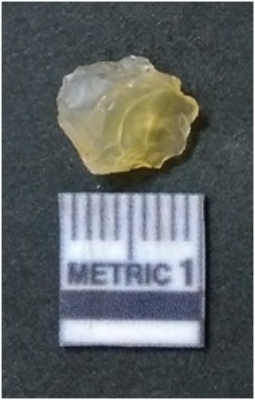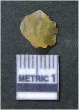 | Description / विवरण | It is chalcedony flake, translucent in appearance. The piece shows sharp pointed ends and flake scars on the surface as a result of flaking. The piece shows a bulb of percussion. |
