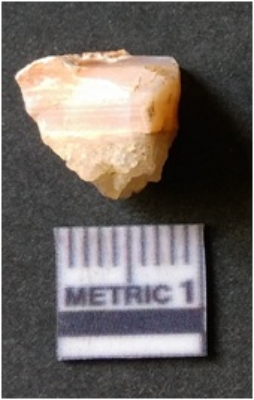 | Description / विवरण | The milky quartz flake has irregular fracture pattern and sharp flaked edges as a result of lithic knapping activity. The piece is pale, with surfacial flake scars and a bulbous end. The flake is white in color. |