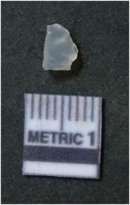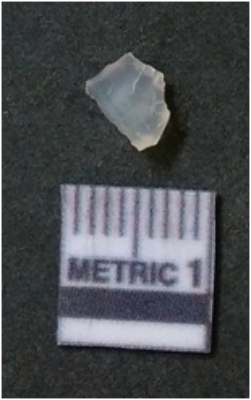 | Description / विवरण | The flake has irregular fracture pattern and sharp flaked edges as a result of lithic knapping activity. The piece is pale, with surfacial flake scars and a bulbous end. The quartz flake is glassy, and transparent. |