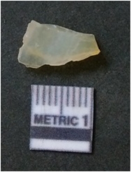 | Description / विवरण | The quartz flake has sharp flaked edges and pointed ends as a result of flaking. The piece is semi-transparent in nature with irregular fracture pattern. The piece is roughly triangular in shape and has a prominent bulb of percussion. |