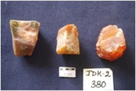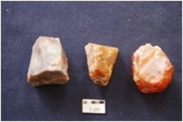 | Description / विवरण | 3 cores with bladescars on Chert and Agate, prepared platform along one end. |