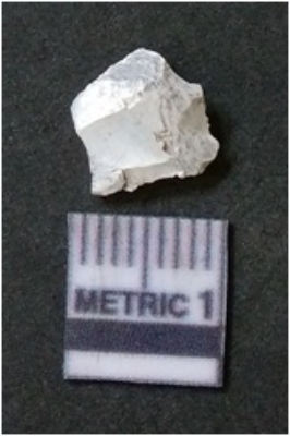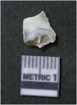 | Description / विवरण | The milky quartz flake has irregular fracture pattern and sharp flaked edges as a result of lithic knapping activity. The piece is pale, with surfacial flake scars and a bulbous end. The flake is white in color. |