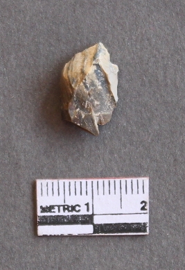 | Description / विवरण | It is an agate nodule. With bulb of percussion on ventral side of the fragment. Flake ridges on the surface. It is a banded agate and translucent in appearance. |