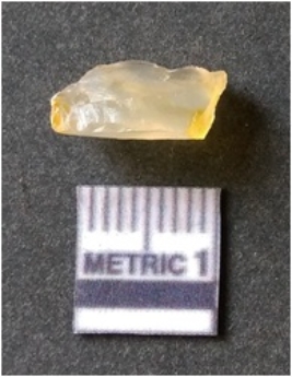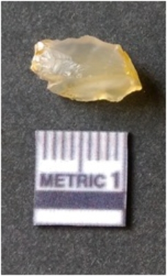 | Description / विवरण | It is chalcedony flake, translucent in appearance. The piece shows sharp pointed ends and flake scars on the surface as a result of flaking. The piece shows a bulb of percussion. |