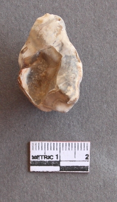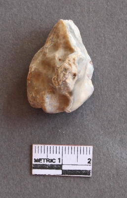 | Description / विवरण | It is a smoky quartz nodule, cortex on one end; there are many flake scars with ripples on it. |