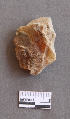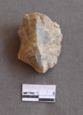 | Description / विवरण | It is a chalcedony nodule, with a striking platform, cortex on one end; there are many flake scars with ripples on it. |