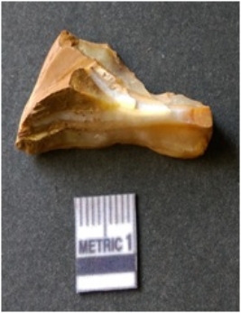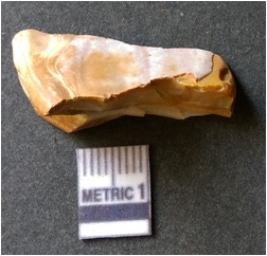 | Description / विवरण | The banded agate piece is crystalline in nature, with a smooth fracture pattern and visible bands on the flaked sides. The piece is pale in color and has sharp flaked ends. |
