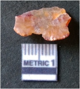 | Description / विवरण | It is chalcedony flake, translucent in appearance. The piece shows sharp pointed ends and flake scars on the surface as a result of flaking. The piece shows a bulb of percussion. |
