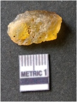 | Description / विवरण | It is chalcedony flake, translucent in appearance. The piece shows sharp pointed ends and flake scars on the surface as a result of flaking. The piece shows a bulb of percussion. |