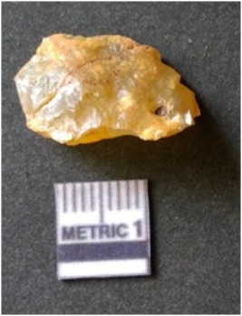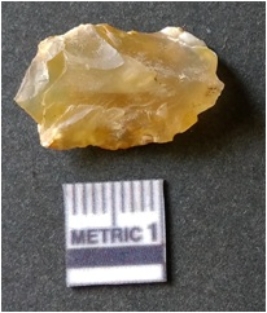 | Description / विवरण | It is chalcedony flake, translucent in appearance. The piece shows sharp pointed ends and flake scars on the surface as a result of flaking. The piece shows a bulb of percussion. |