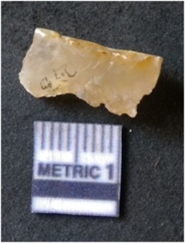 | Description / विवरण | It is chalcedony flake, translucent in appearance. The piece shows sharp pointed ends and flake scars on the surface as a result of flaking. The piece shows a bulb of percussion. |