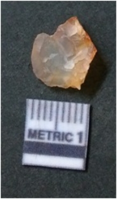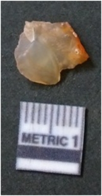 | Description / विवरण | It is chalcedony flake, translucent in appearance. The piece shows sharp pointed ends and flake scars on the surface as a result of flaking. The piece shows a bulb of percussion. |