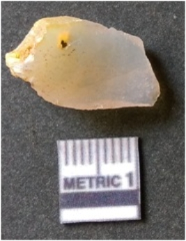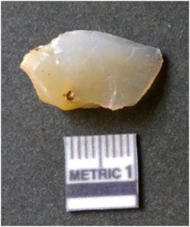 | Description / विवरण | It is chalcedony flake, translucent in appearance. The piece shows sharp pointed ends and flake scars on the surface as a result of flaking. The piece shows a bulb of percussion. |