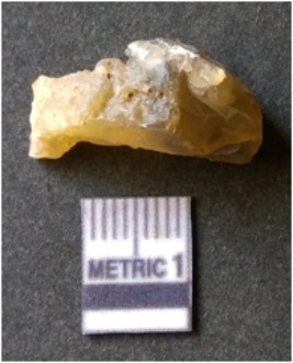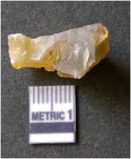 | Description / विवरण | It is chalcedony flake, translucent in appearance. The piece shows sharp pointed ends and flake scars on the surface as a result of flaking. The piece shows a bulb of percussion. |