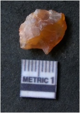 | Description / विवरण | It is chalcedony flake, translucent in appearance. The piece shows sharp pointed ends and flake scars on the surface as a result of flaking. The piece shows a bulb of percussion. |