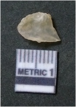 | Description / विवरण | It is chalcedony flake, translucent in appearance. The piece shows sharp pointed ends and flake scars on the surface as a result of flaking. The piece shows a bulb of percussion. |