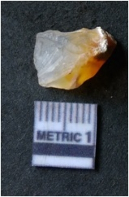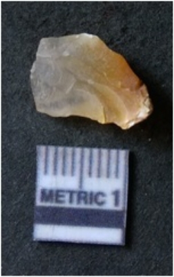 | Description / विवरण | It is chalcedony flake, translucent in appearance. The piece shows sharp pointed ends and flake scars on the surface as a result of flaking. The piece shows a bulb of percussion. |