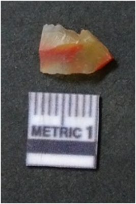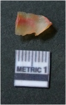 | Description / विवरण | It is chalcedony flake, translucent in appearance. The piece shows sharp pointed ends and flake scars on the surface as a result of flaking. The piece shows a bulb of percussion. |
