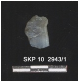 | Description / विवरण | Lithic debitage on agate. The ridges can be clearly seen. The striking platform and bulb of perforation can be seen. |