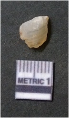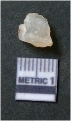 | Description / विवरण | The quartz flake has sharp flaked edges and pointed ends as a result of flaking. The piece is semi-transparent in nature with irregular fracture pattern. The piece is roughly triangular in shape and has a prominent bulb of percussion. |