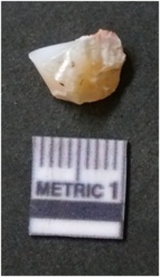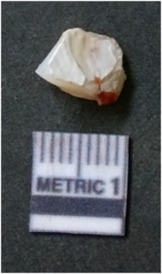 | Description / विवरण | The milky quartz flake has irregular fracture pattern and sharp flaked edges as a result of lithic knapping activity. The piece is pale, with surfacial flake scars and a bulbous end. The flake is white in color. |