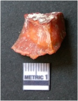 | Description / विवरण | It is carnelian flake red in color, with sharp flakes edges and a small bulb of percussion owing to knapping activity. The piece has sharp flaked edges and a crypto-crystalline matrix. |