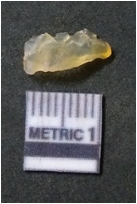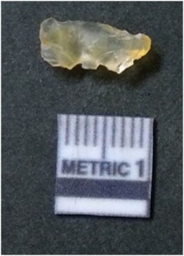 | Description / विवरण | The flake is elongated with flaked edges and sharp ends. The piece has a positive bulb of percussion with crypto crystalline matrix. |