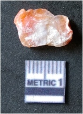 | Description / विवरण | It is chalcedony flake, translucent in appearance. The piece shows sharp pointed ends and flake scars on the surface as a result of flaking. The piece shows a bulb of percussion. |