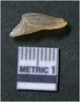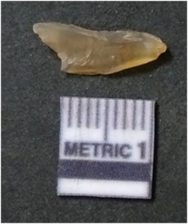 | Description / विवरण | The flake is elongated with flaked edges and sharp ends. The piece has a positive bulb of percussion with crypto crystalline matrix. |