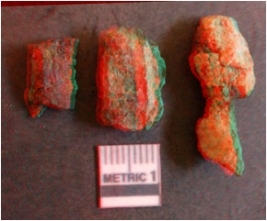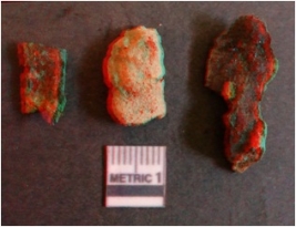 | Description / विवरण | The iron fragments are crude in shape and rusted. The pieces are three in number, but do not form an identifyable piece. |