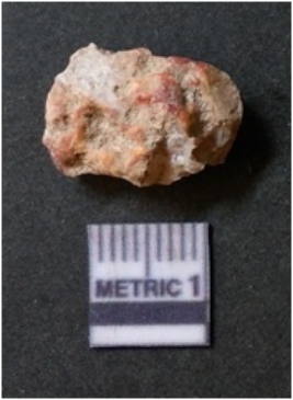 | Description / विवरण | The flake has irregular fracture pattern and sharp flaked edges as a result of lithic knapping activity. The piece is pale, with surfacial flake scars and a bulbous end. The quartz flake is rosy white in colour. |