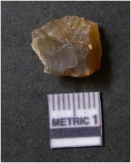 | Description / विवरण | It is chalcedony flake, translucent in appearance. The piece shows sharp pointed ends and flake scars on the surface as a result of flaking. The piece shows a bulb of percussion. |